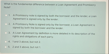 ◻ 1. A Promissory note is signed by both the borrower and the lender, a Loan Agreement is signed only by the lender.