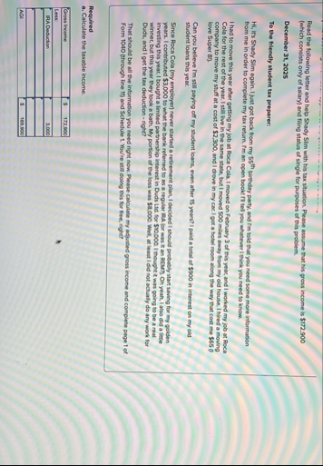 Read the following letter and help Shady Sim with his tax situation. Please assume that his gross income is