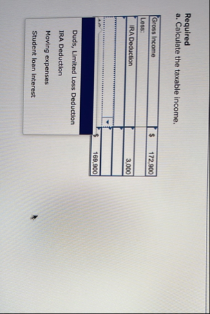 a. Calculate the taxable income.