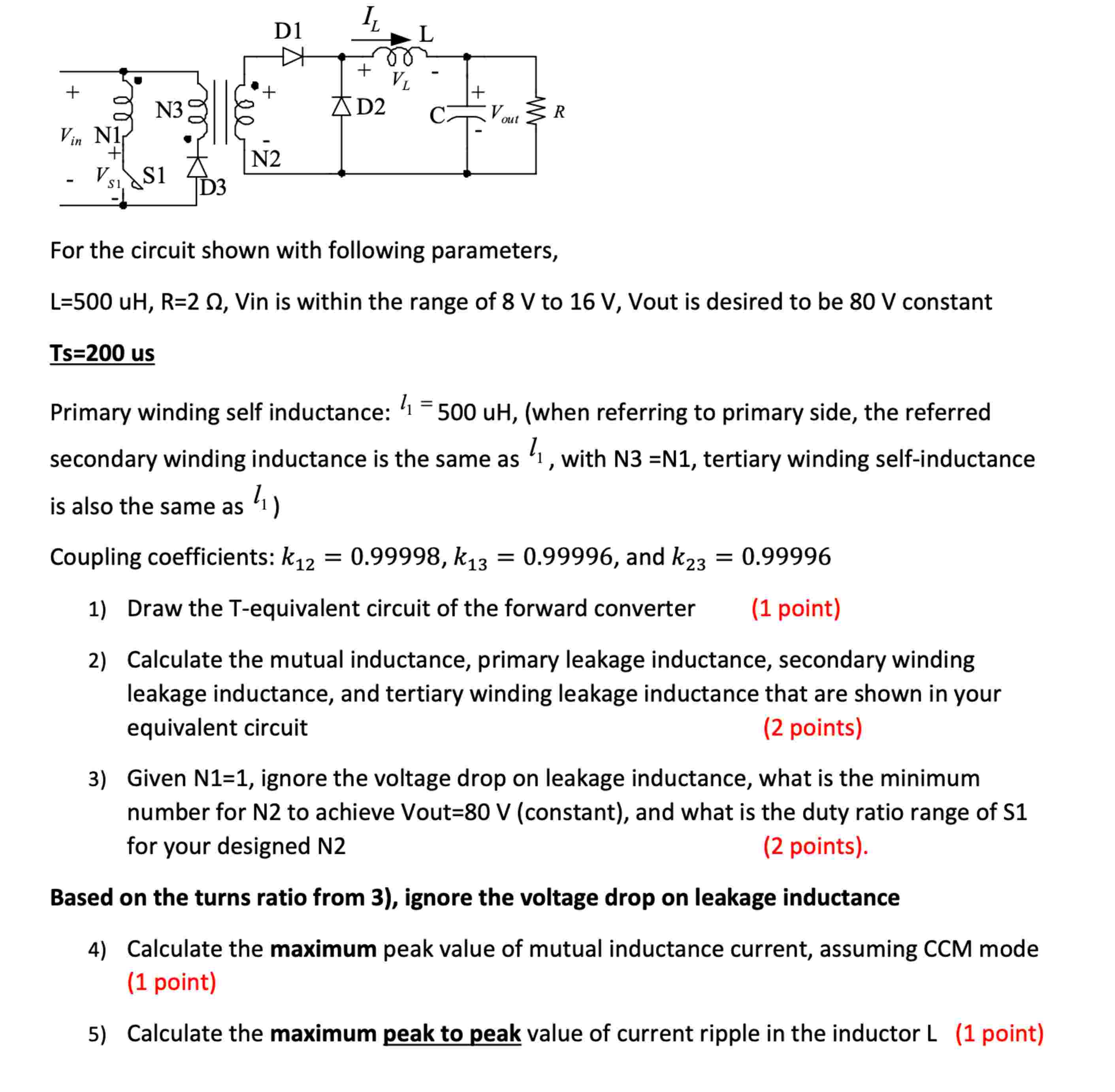 Primary winding self inductance: l_(1)=500uHl_(1), with N3=N1, tertiary winding self-inductance