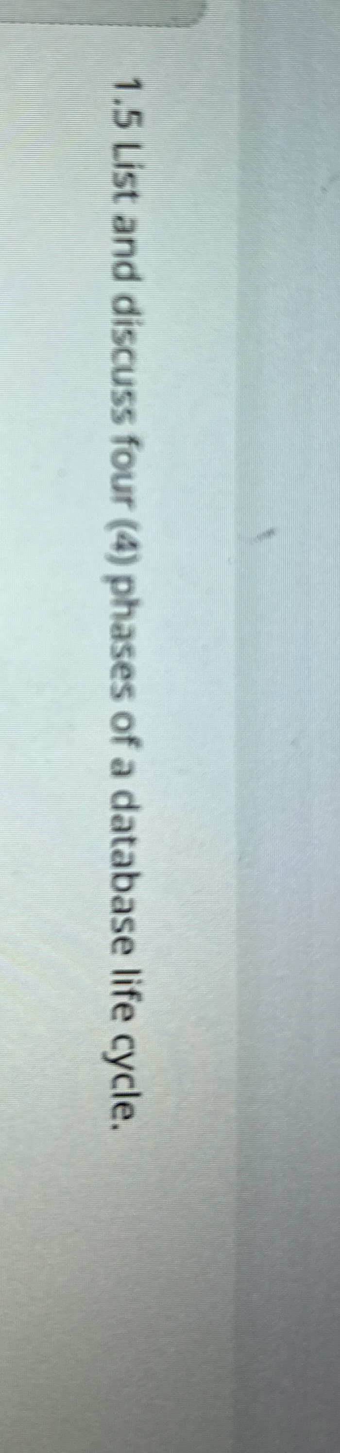 (Solved): 1.5 List and discuss four (4) phases of a database life cycle. ...