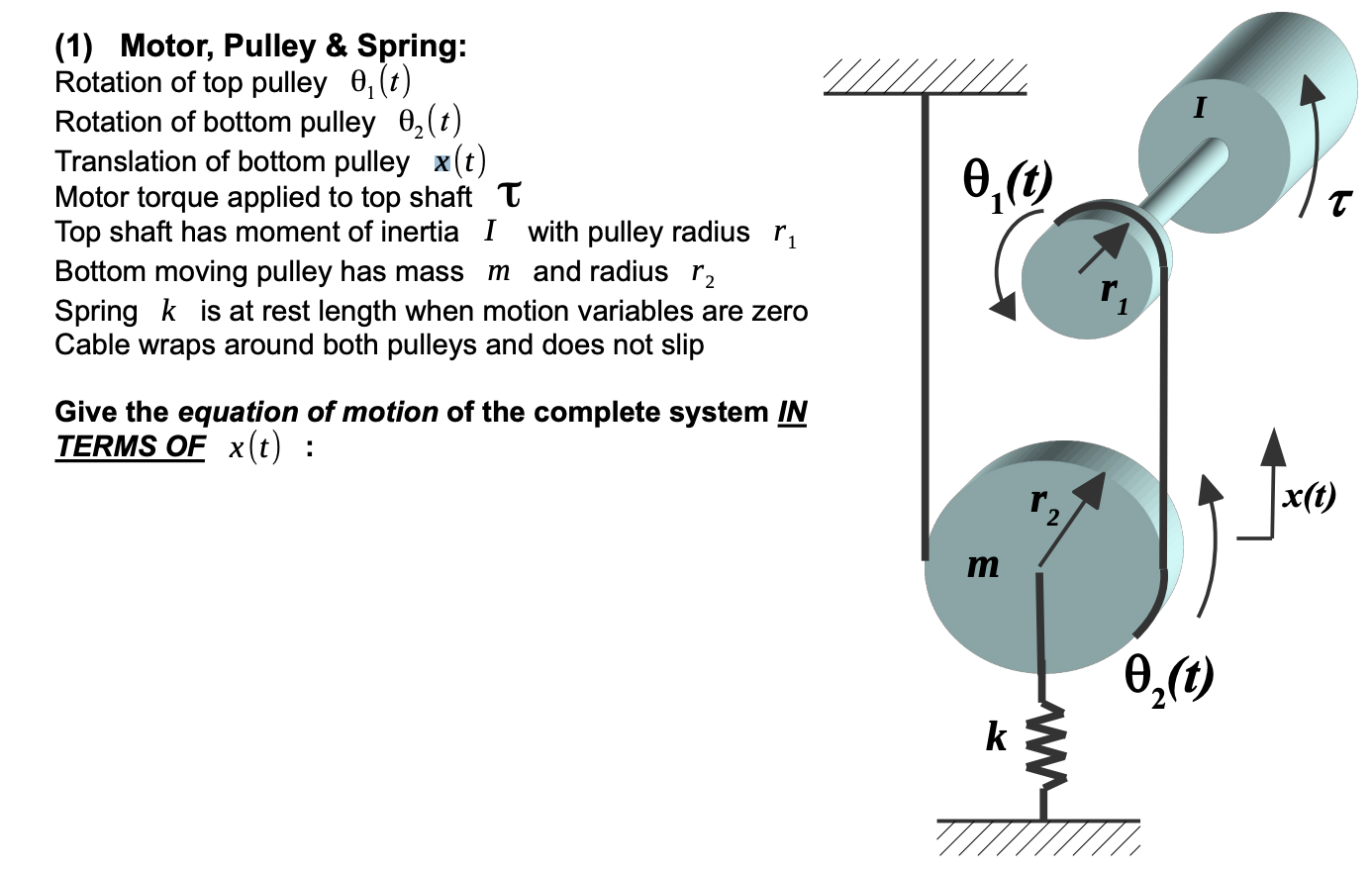 Top shaft has moment of inertia I with pulley radius r_(1)