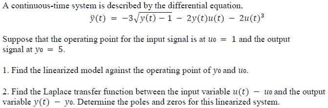 Find the linearized model against the operating point of y_(0) and u_(0).
