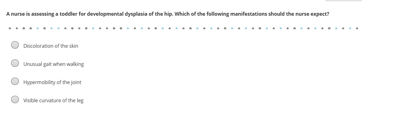 a-nurse-is-assessing-a-toddler-for-developmental-dysplasia-of-the-hip-which-of-the-following-manif-pa448