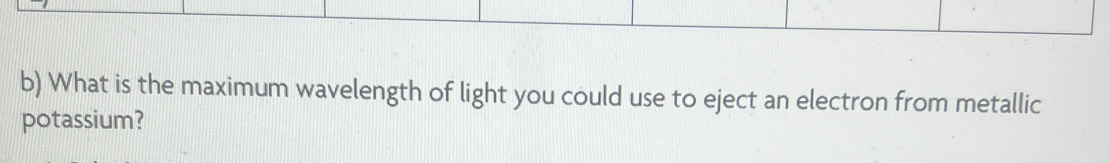 b) What is the maximum wavelength of light you could use to eject an electron from metallic potassium?