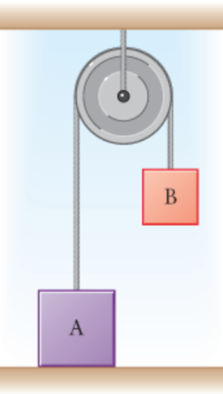 Box A has a mass mA=10.71 kg and rests (ay=0) on a table as in Figure. A rope connects box A to box B of mass mB=3.57 kg by a pulley so that box B hangs above the table (again, the system remains at rest ay=0). The pulley and rope are massless, and the pulley is frictionless.