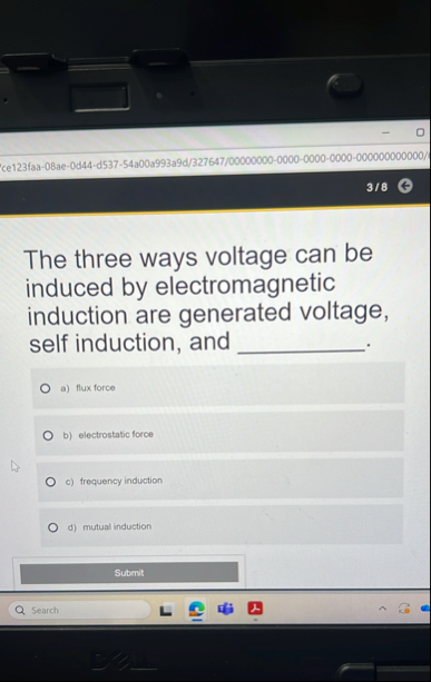 (3)/(8)The three ways voltage can be induced by electromagnetic induction are generated voltage, self induction, and