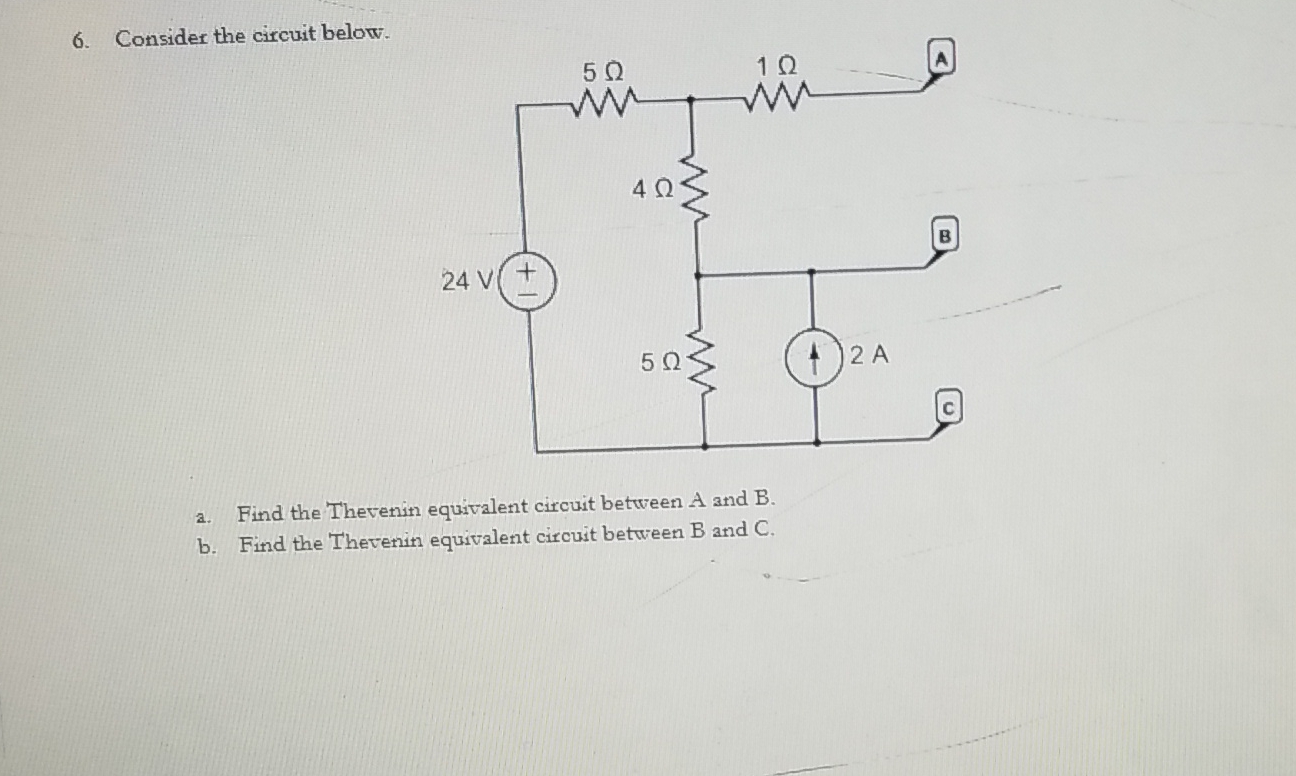 Consider the circuit below. a. Find the Thevenin equivalent circuit between
