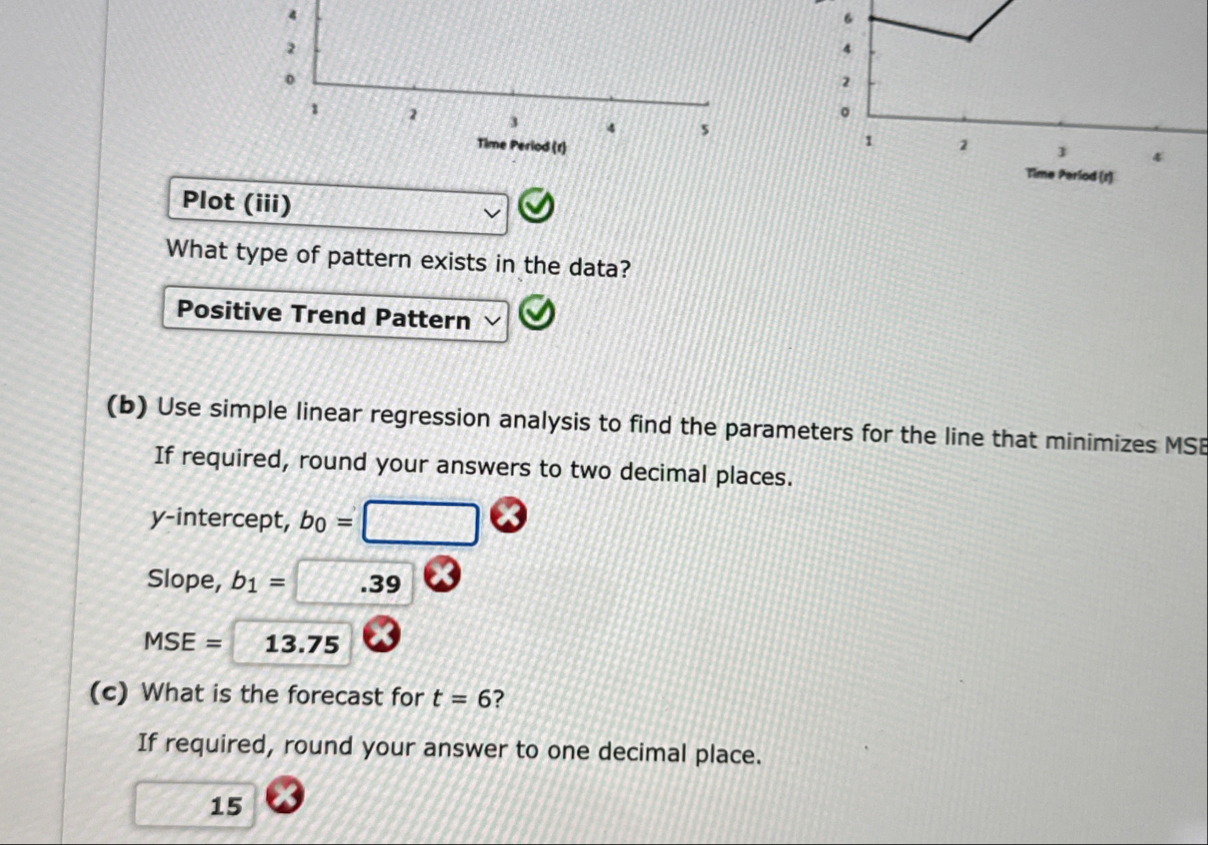y_(t),6,11,9,14,15]] (a) Choose the correct time series plot. (i) (ii) (iii) What type of pattern exists in the data? Freed Coet
