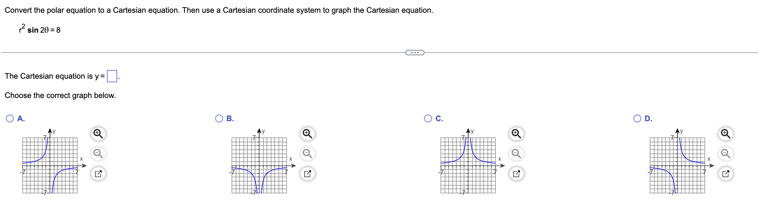 Convert the polar equation to a Cartesian equation. Then use a Cartesian coordinate system to graph the Cartesian equation.
