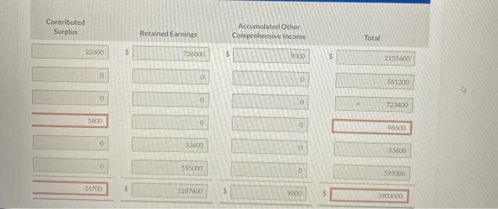 The following equity transactions occurred in 2021 : Fcb. 6 15sued 9.200 preferred shares for $561.200 Apr. 6 issued 20.000 commonshares for $550,000 27 Repurchasedand retired 2,900 common shares at $16 per share. The balance in the Contributed Surplus account arose from the repurchase of common shares in prior years. May 29 Declaredasemi-annual cosh dividend to the preferred shareholders of record at June 12, payable July 1. Aug 22 Issued B,700 common shares in exchange for a building. At the time of the excharne. the building was valued at $173.400 and the common shares at $159,000. Dee 14 The board of directors docided there were insutficient funds to deciare the semi-annual dividend to the preferred shareholders. 31 Net income for the year was $595,000
