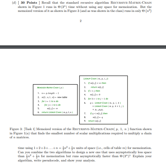 (d) [ 30 Points ] Recall that the standard recursive algorithm Recursive-Matrix-Chain