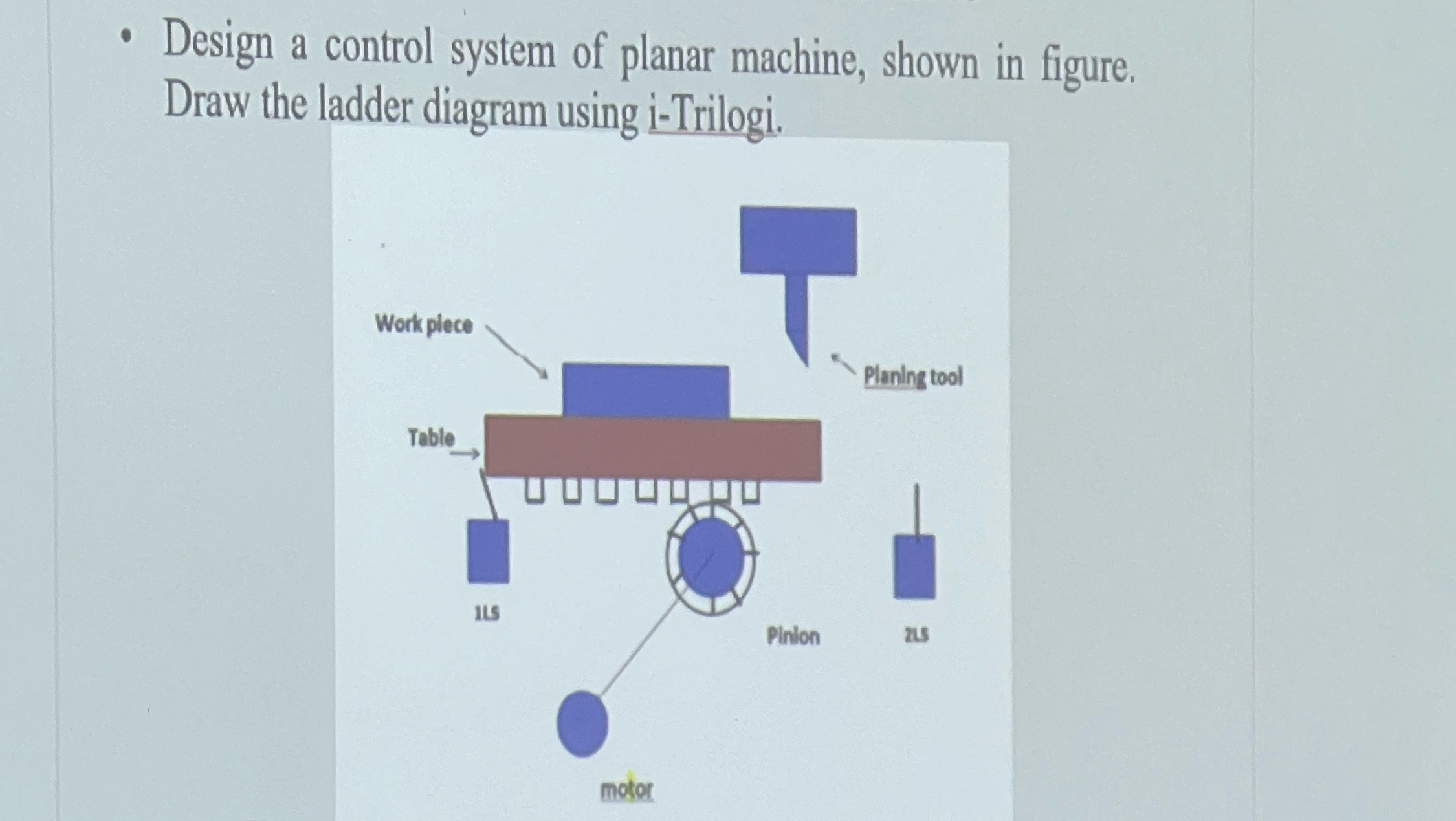Design a control system of planar machine, shown in figure. Draw the ladder diagram using i-Trilogi. • •