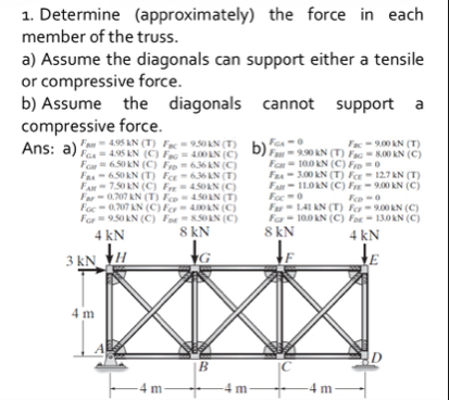 determine-approximately-the-force-in-each-member-of-the-truss-a-assume-the-diagonals-can-support-pa454