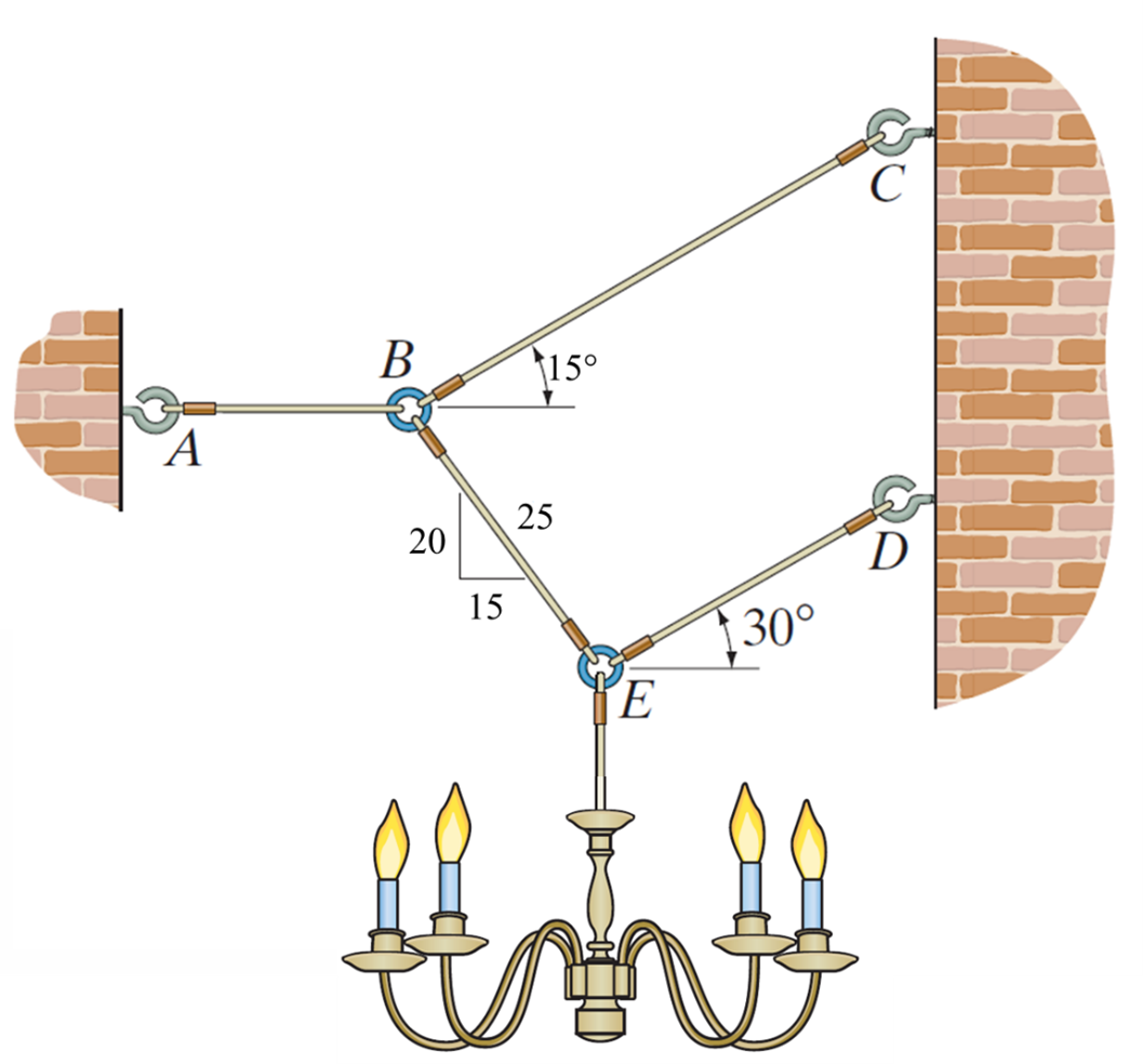 (Solved): Determine the maximum mass of the chandelier that the cable system can support if the tension develo ...