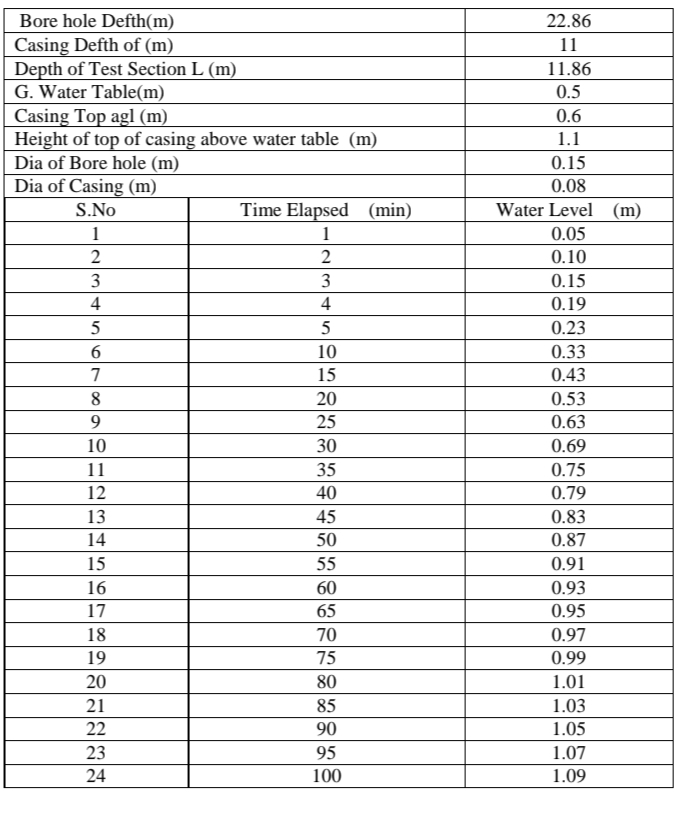 (Solved): Falling head borehole field test is conducted. Calculate the hydraulic conductivity (also known as c ...