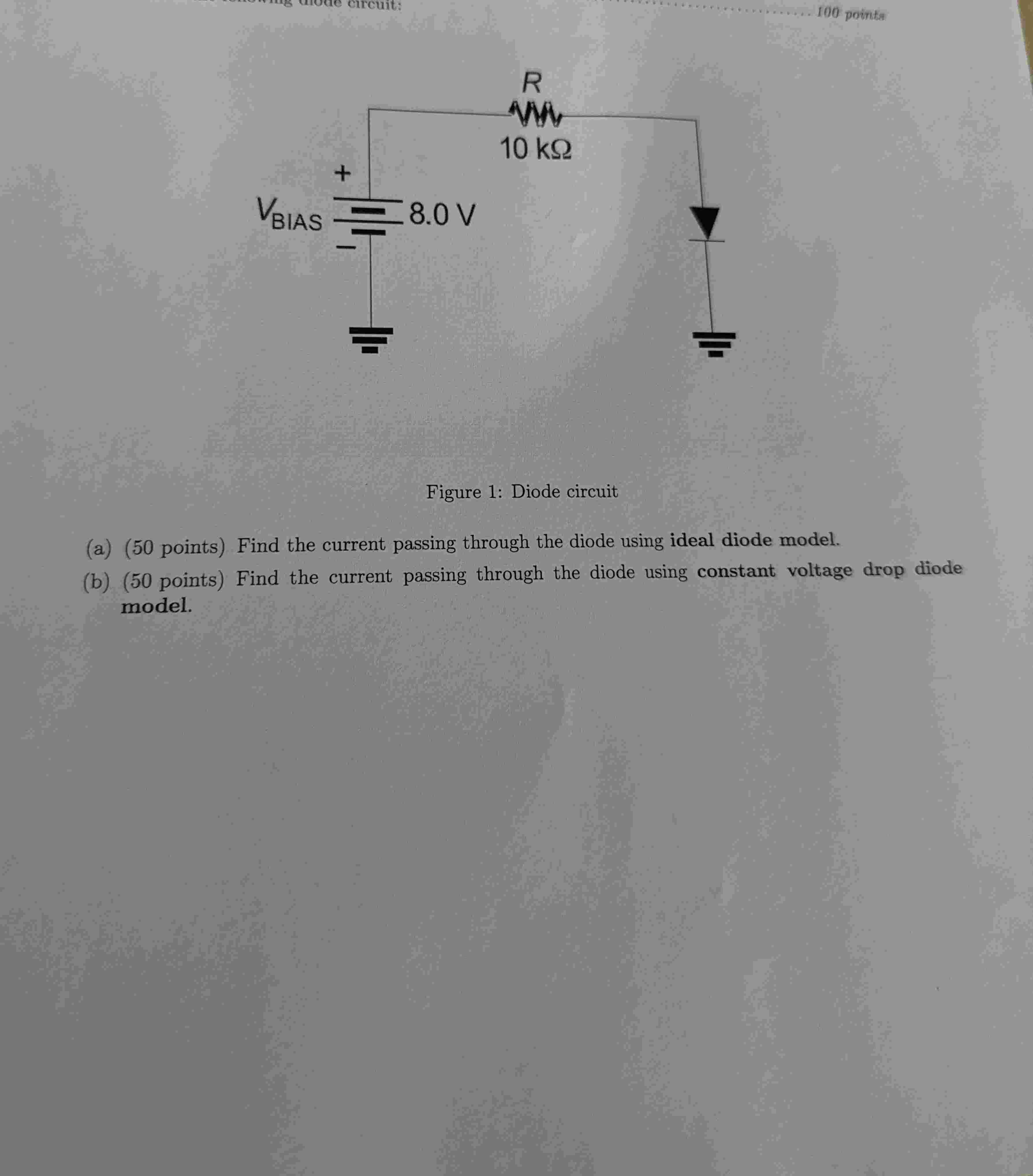(Solved): Figure 1: Diode circuit (a) (50 points) Find the current passing through the diode using ideal diode ...