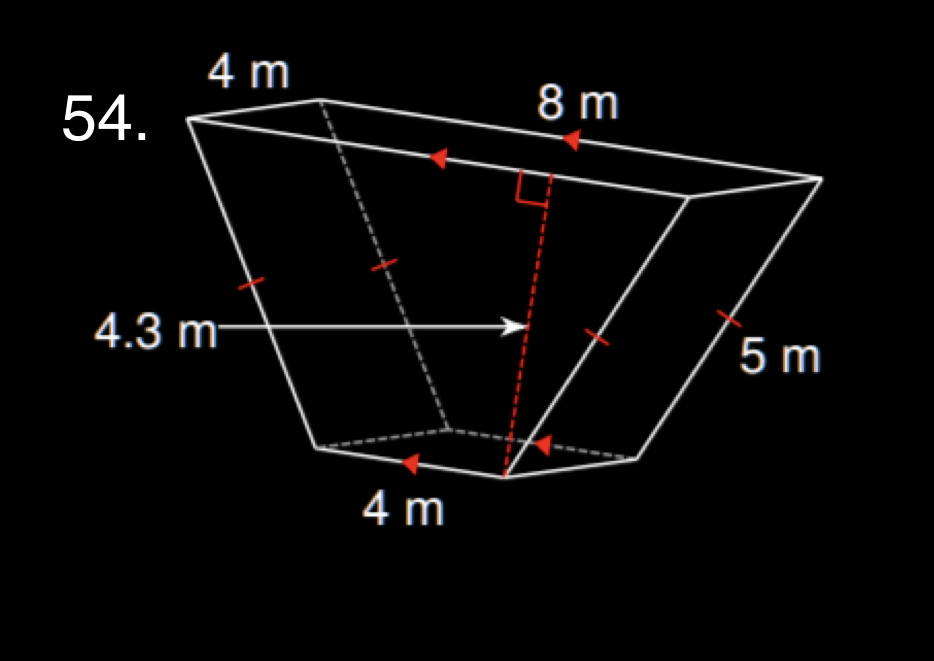 The given shape represents a frustum with a rectangular base.The volume of the figure is ,The surface area is given by Since the shape contains a square, two quadrilaterals and a rectangle.By substituting the values in the formula, the required v...