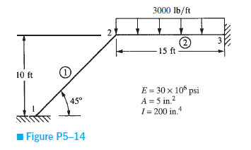 For the rigid frame shown in the figure, determine the displacements and rotations of the nodes, the element forces and reactions.