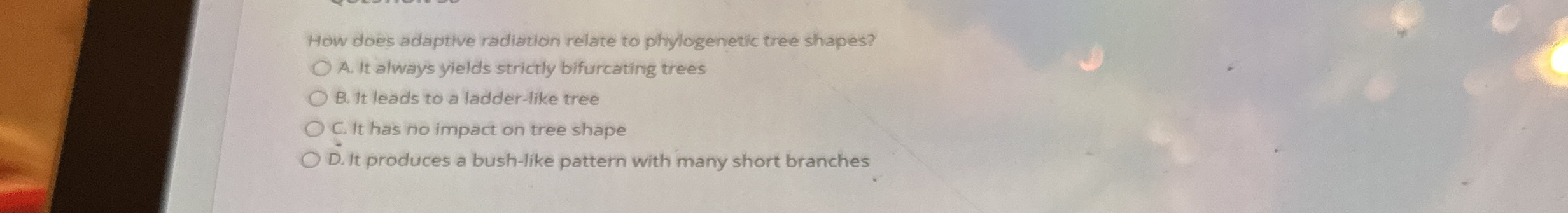 how-does-adaptive-radiation-relate-to-phylogenetic-tree-shapes-a-it-always-yields-strictly-bifurca-pa510