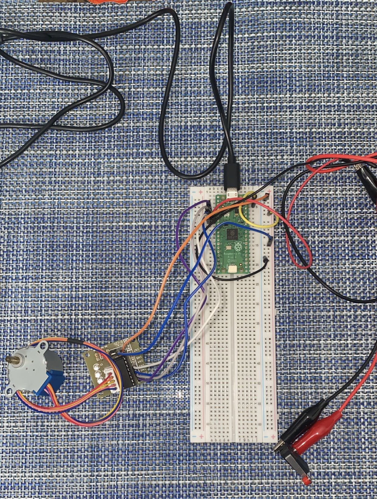I am in need of a PYTHON CODE that deals with the ROHS 28BYJ-48 5VDC Stepper motor that is connected to a raspeberry pi pico h and a limit switch. I need this code to move a certain amount of steps clockwise (preferably have a command to input the number of steps), then once the limit switch is activated I need it to move off of the limit switch slightly and wait for another command before it moves back counter clockwise to its original position. A homing code essentially. Below I have attach a icture of my set up. If I need to make any adjustments please let me know. To clarify the limit switch is set up on two of the same pins that the motor is connected to (where the blue and white wire are GPIO pin 4 and 5).