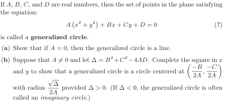 A=0, then the generalized circle is a line. (b) Suppose that