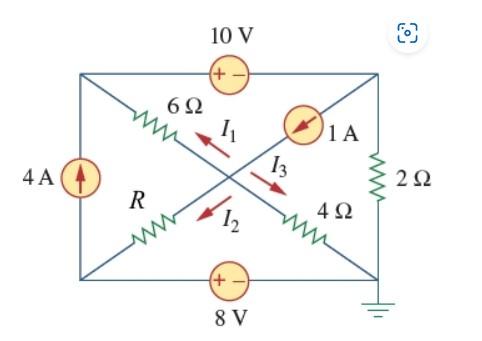 In the circuit given below, R = 6 ?. Solve for I1, I2, and I3.