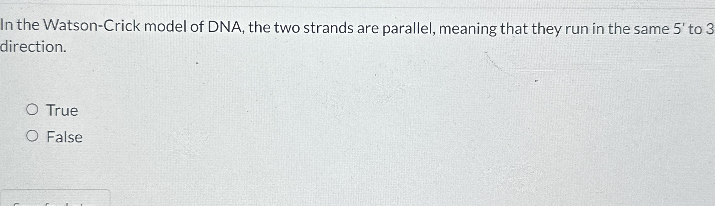 In the Watson-Crick model of DNA, the two strands are parallel, meaning that they run in the same