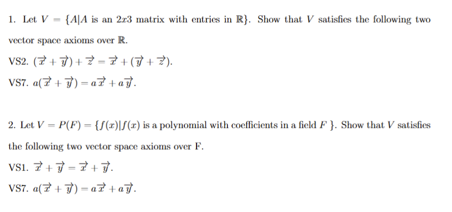 the following two vector space axioms over F .
