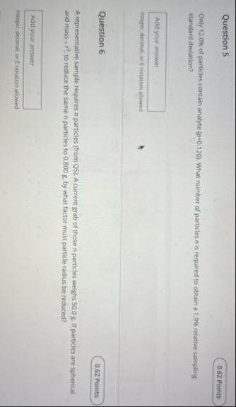 (Solved): Question 5 Only 12.0% of particles contain analyte (p)=(0.12...