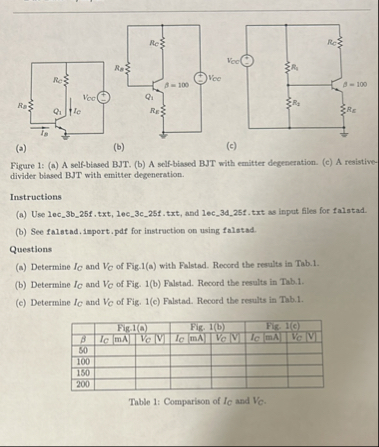Figure 1: (a) A self-bissed BJT. (b) A self-biased BJT with emitter degeneration. (c) A resistivedivider binsed BJT with emitter degeneration.