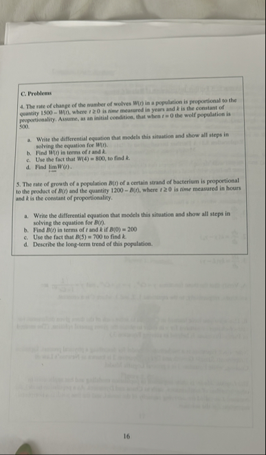 a. Write the differential equation that models this situation and show all steps in solving the equation for