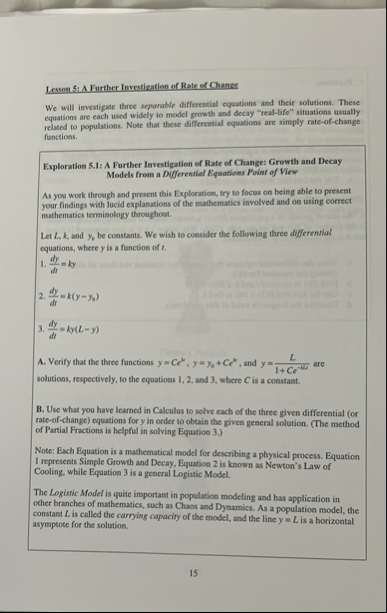 Exploration 5.1: A Further Investigation of Rate of Change: Growth and Decay Models from a Differential Equations Point of View