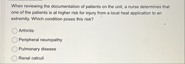 When reviewing the documentation of patients on the unit, a nurse determines that one of the patients is at higher risk for injury from a local heat application to an extremity. Which condition poses this risk?