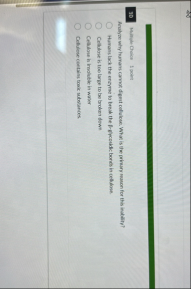 Analyze why humans cannot digest cellulose. What is the primary reason for this inability?