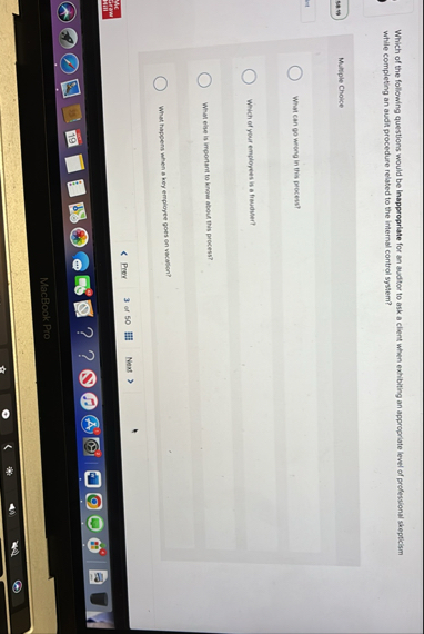 Which of the following questions would be inappropriate for an auditor to ask a client when exhibiting an appropriate level of professional skepticism while completing an audia procedure related to the internal control system?