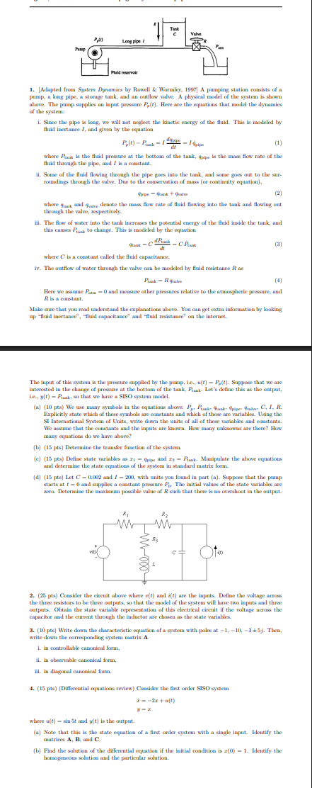 [Adapted from System Dynamics by Rowell & Wormley, 1997] A pumping station consists of a