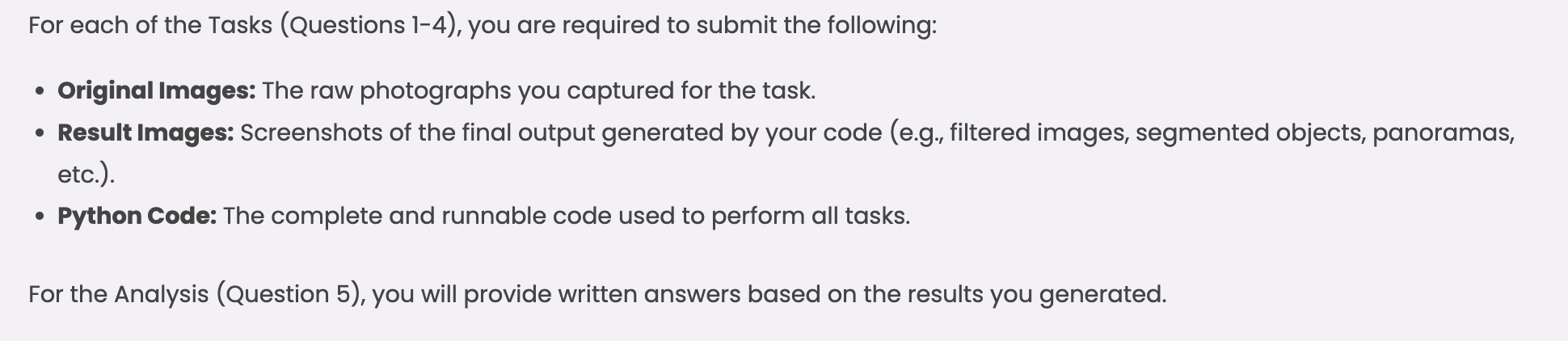 Result Images: Screenshots of the final output generated by your code (e.g., filtered images, segmented objects, panoramas,