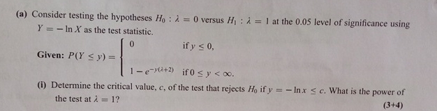 H_(1):\lambda =1 at the 0.05 level of significance using