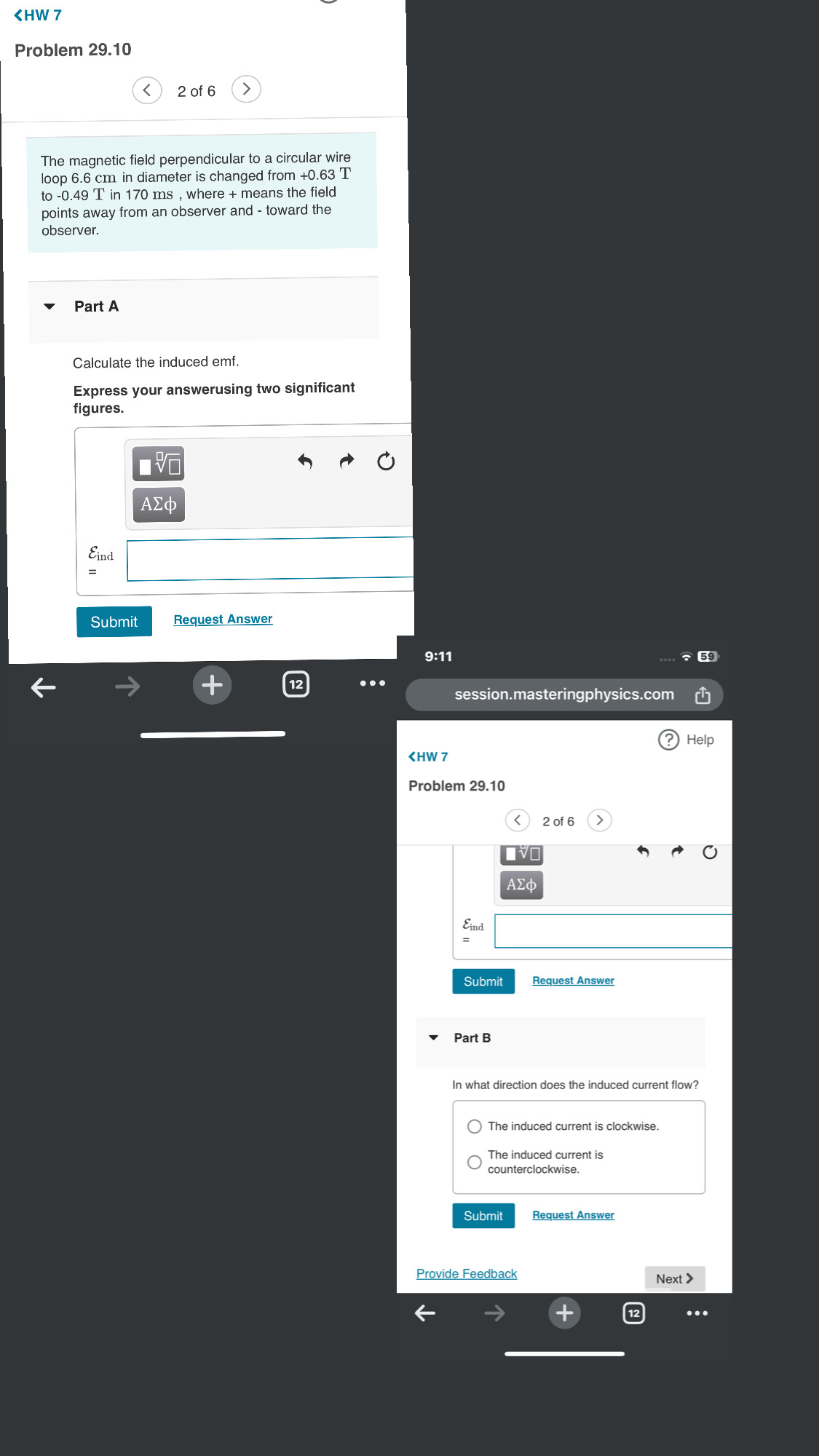 Part B In what direction does the induced current flow? The induced current is clockwise. The induced current is counterclockwise.