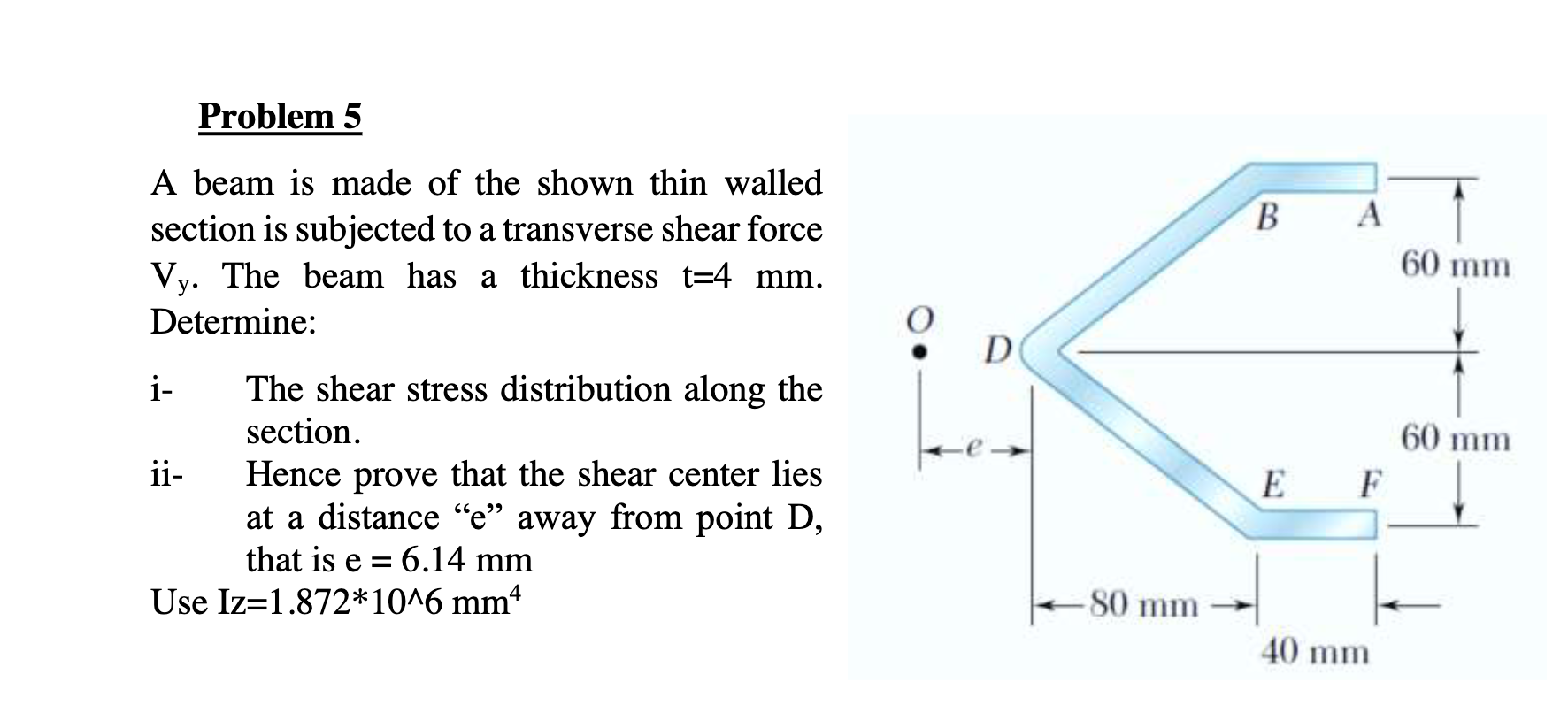 ii- Hence prove that the shear center lies at a distance " e " away from point D , that is e=6.14mm