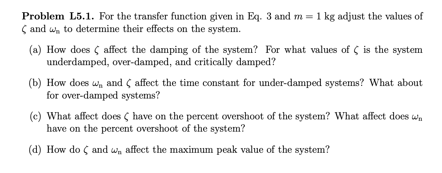 Problem L5.1. For the transfer function given in Eq. 3 and m=1kg adjust the values of