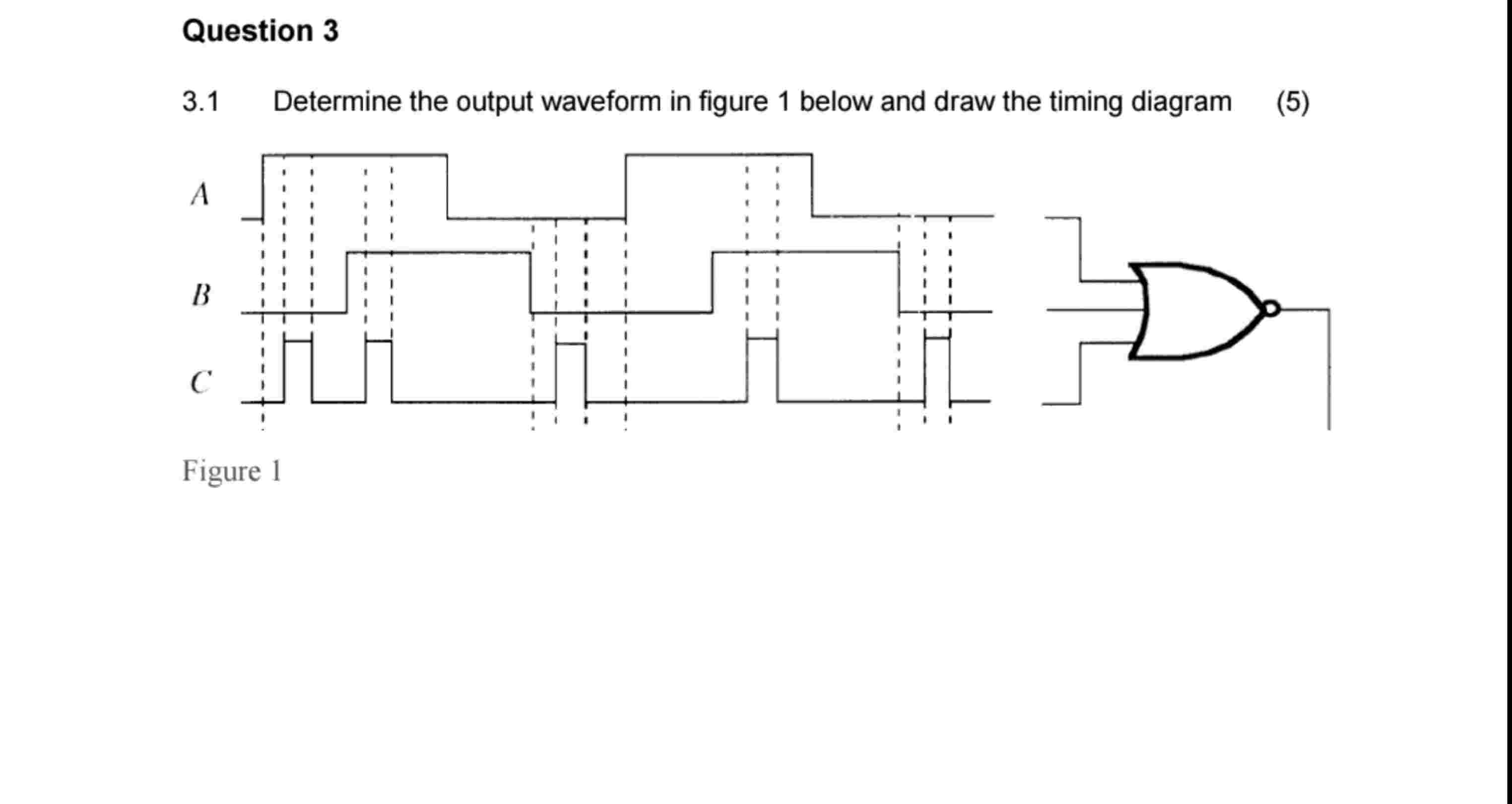 (Solved): Question 3 3.1 Determine the output waveform in figure 1 below and draw the timing diagram ...
