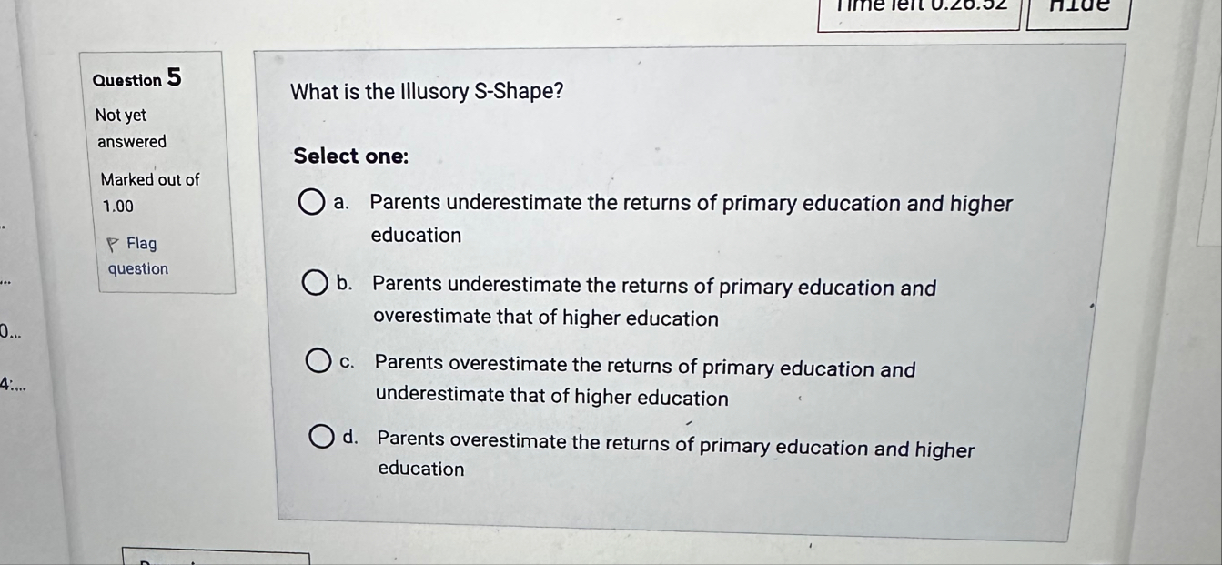 _(_())_(_())c. Parents overestimate the returns of primary education and underestimate that of higher education