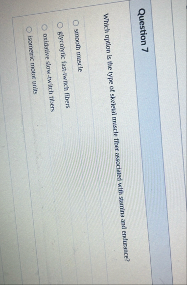 Which option is the type of skeletal muscle fiber associated with stamina and endurance?