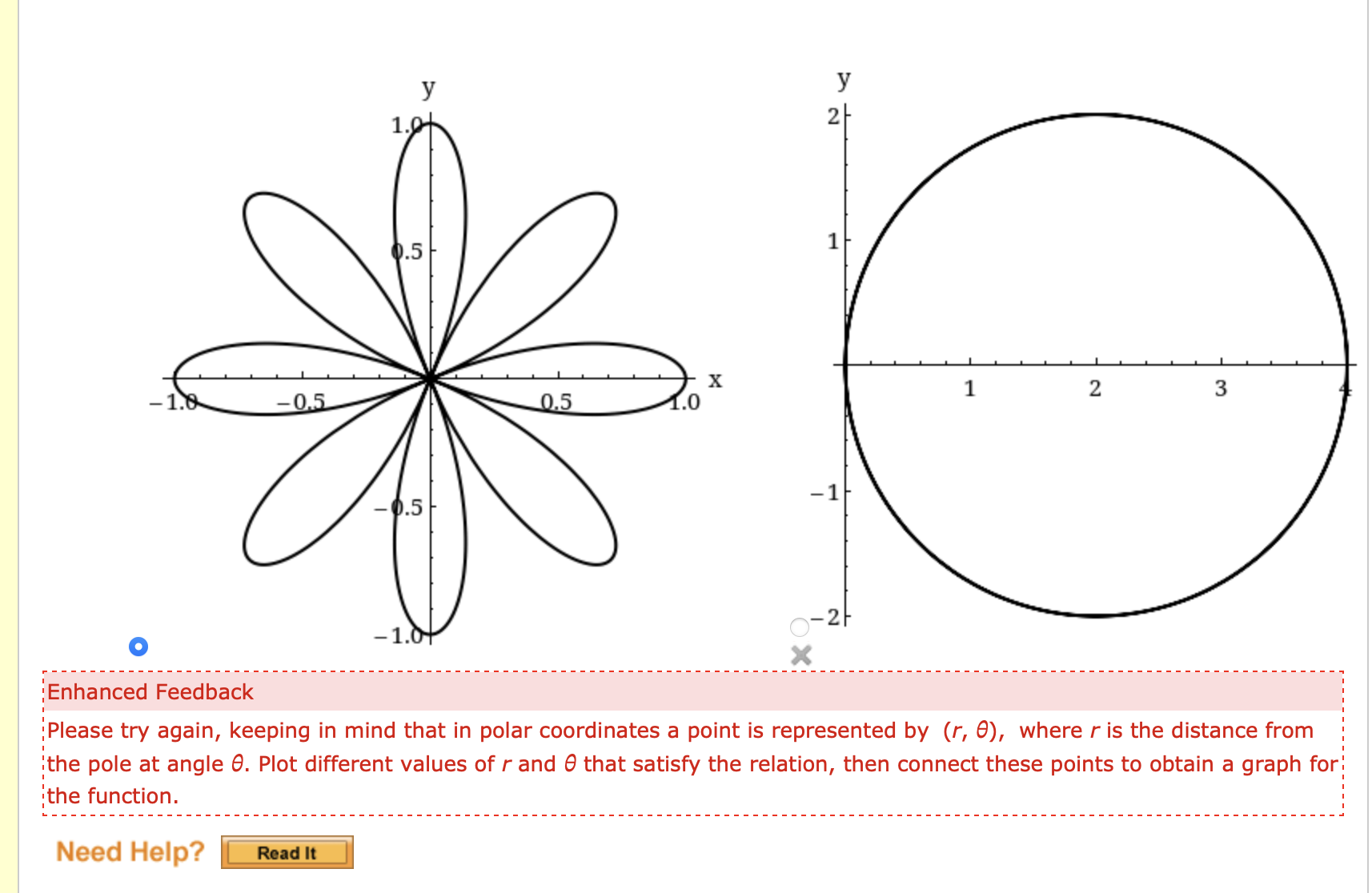 Please try again, keeping in mind that in polar coordinates a point is represented by (r,\theta ), where r is the distance from