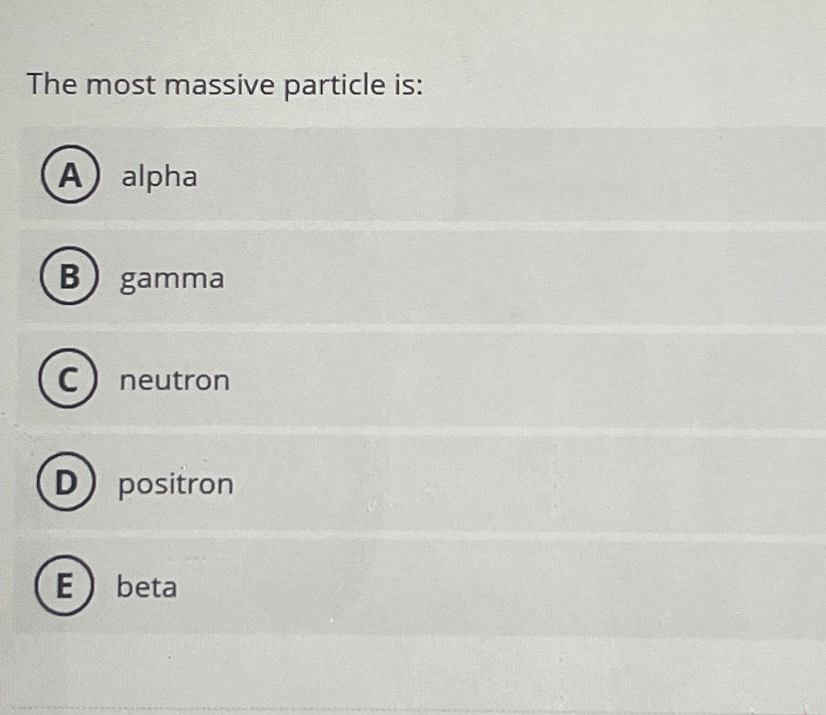 (Solved): The most massive particle is: alpha gamma neutron positron beta ...