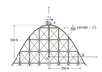 The roller coaster car has a speed of vA = 36 ft/s when it is at the crest of a vertical parabolic track. The total weight of the car and the passengers is 310 lb . Neglect friction and the mass of the wheels. Determine the car's velocity and normal force the car exerts on the track when it reaches point B. Thank you!!