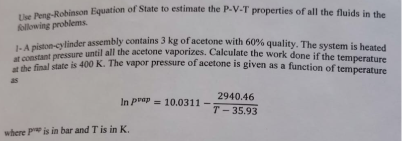 1-A piston-cylinder assembly contains 3 kg of acetone with 60% quality. The system is heated