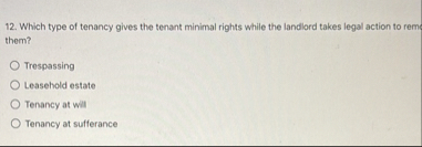 Which type of tenancy gives the tenant minimal rights while the landlord takes legal action to rems them?